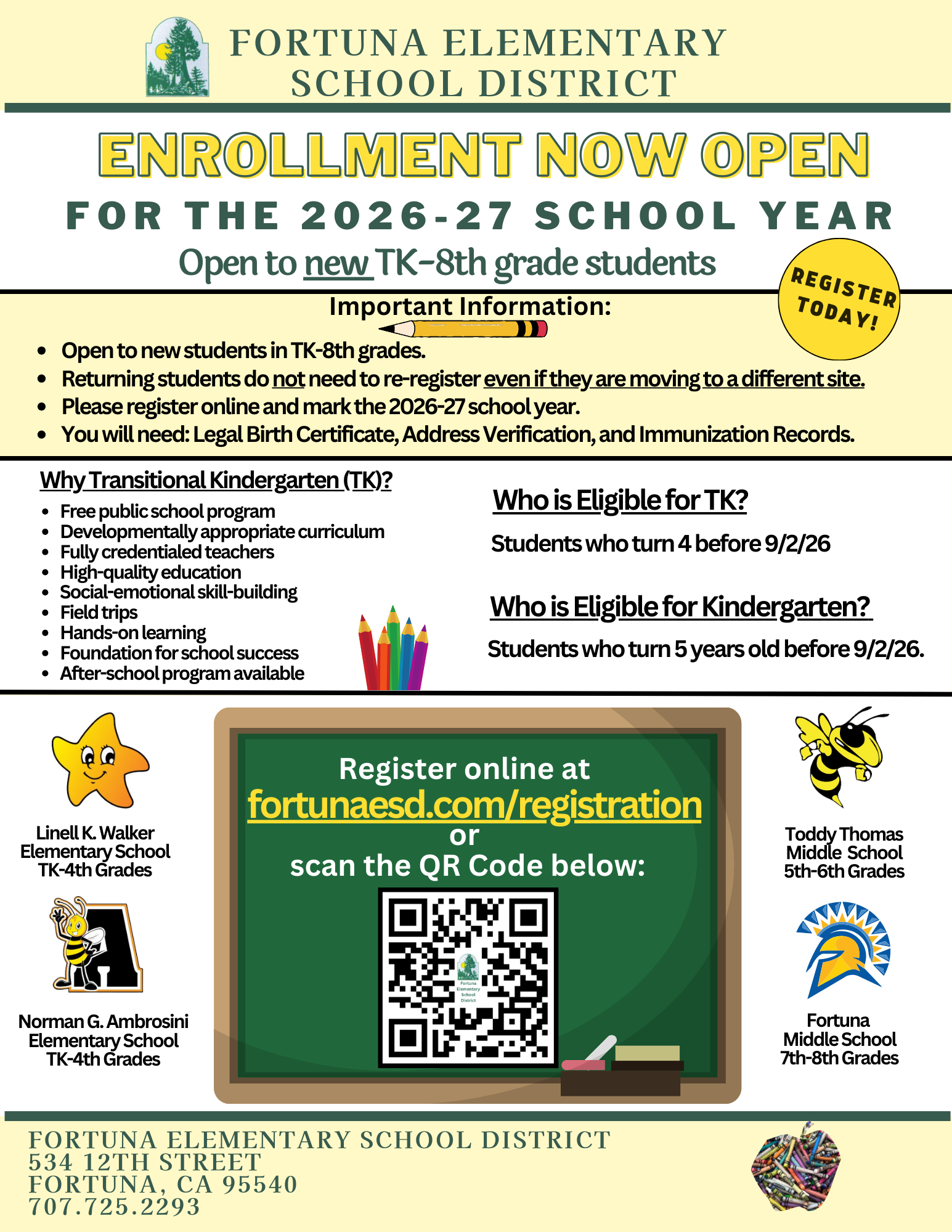 New Student Registration is Now Open at fortunaesd.com/registration ✅