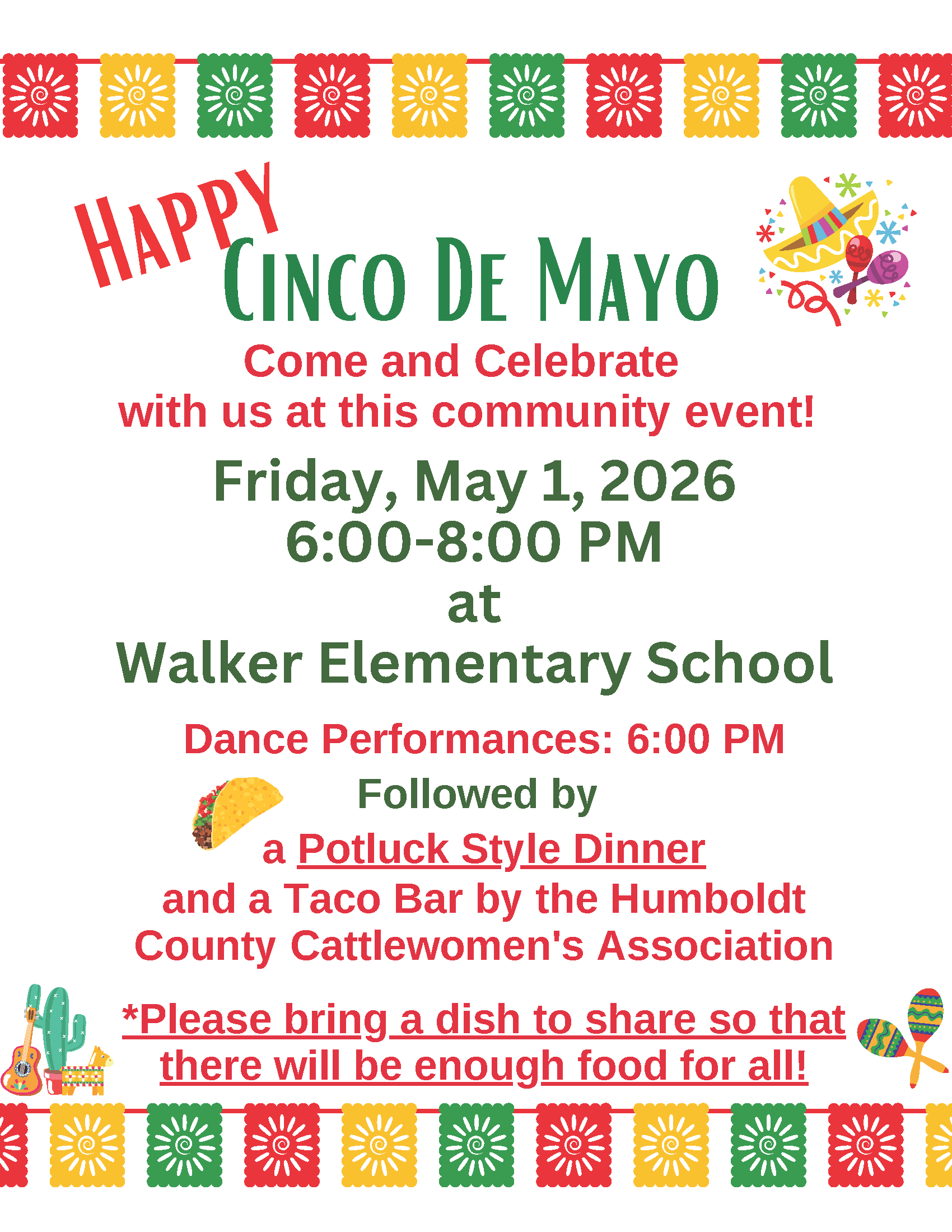 You are invited to the Cinco de Mayo Celebration on Friday, 5/1, at Walker Elementary🌮🪇