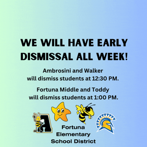 Fortuna Elementary School District will have early dismissal all week (11/18 - 11/22).